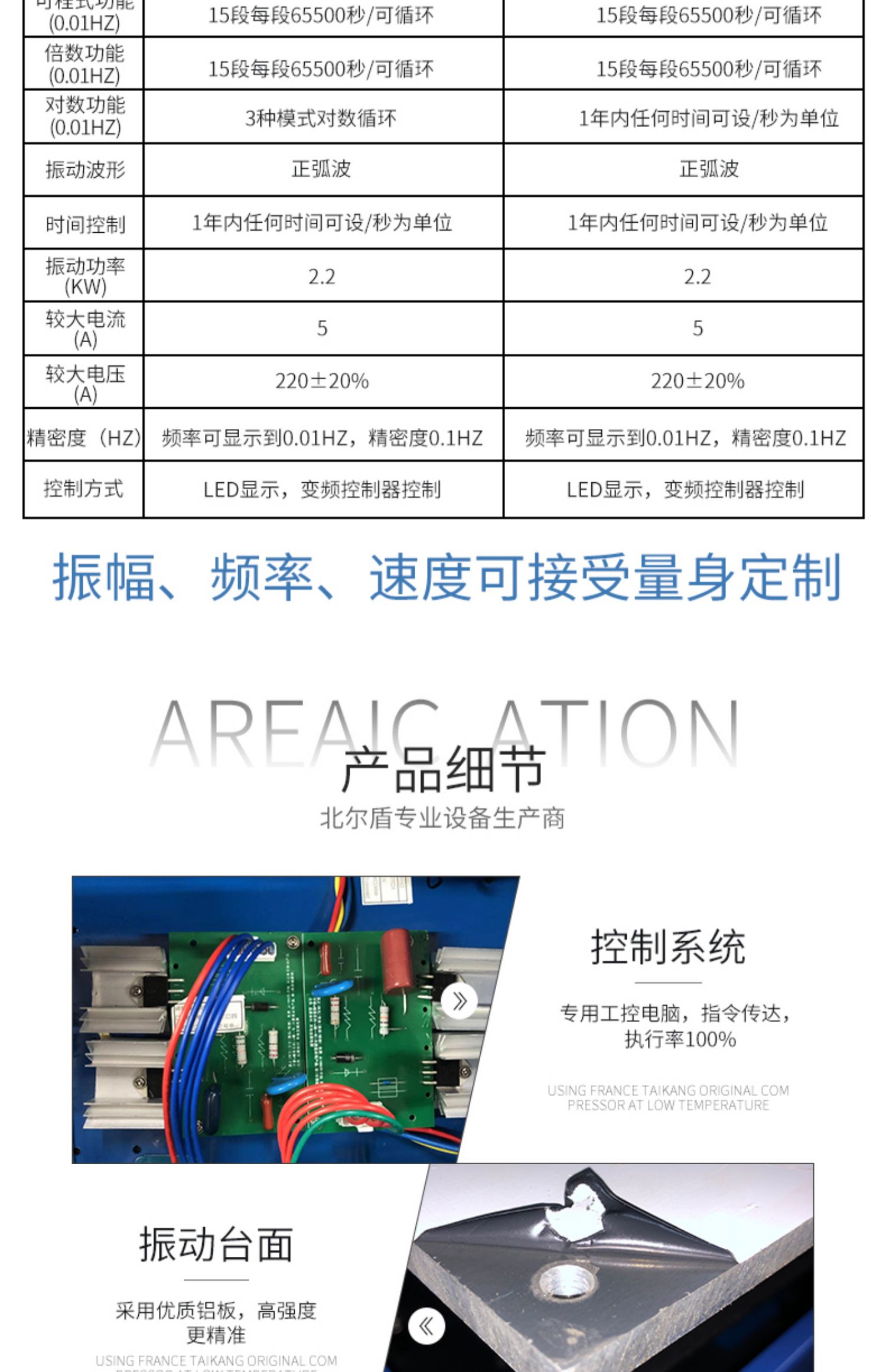 電磁式振動(dòng)臺(tái)主要功能:(半全)正弦波、調(diào)頻振動(dòng)、掃頻振動(dòng)、可程式振動(dòng)、倍頻振動(dòng)、對(duì)數(shù)振動(dòng)、定振幅定振幅±25%內(nèi)、三軸X.Y.Z可各別單獨(dú)振動(dòng)、三軸連續(xù)振動(dòng):六種模式、隨機(jī)振動(dòng):亦可(振動(dòng)方向模式)(頻率模式川(波形模式)